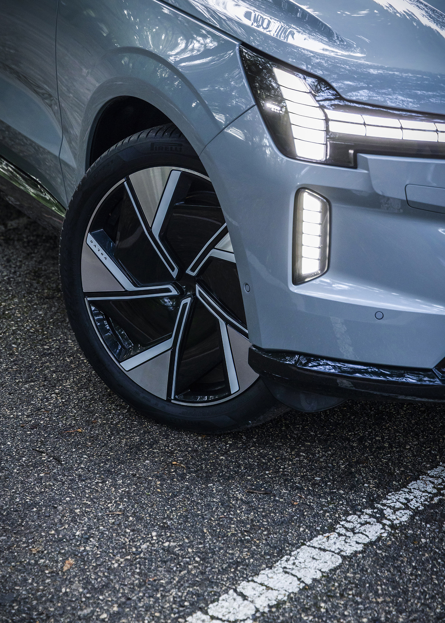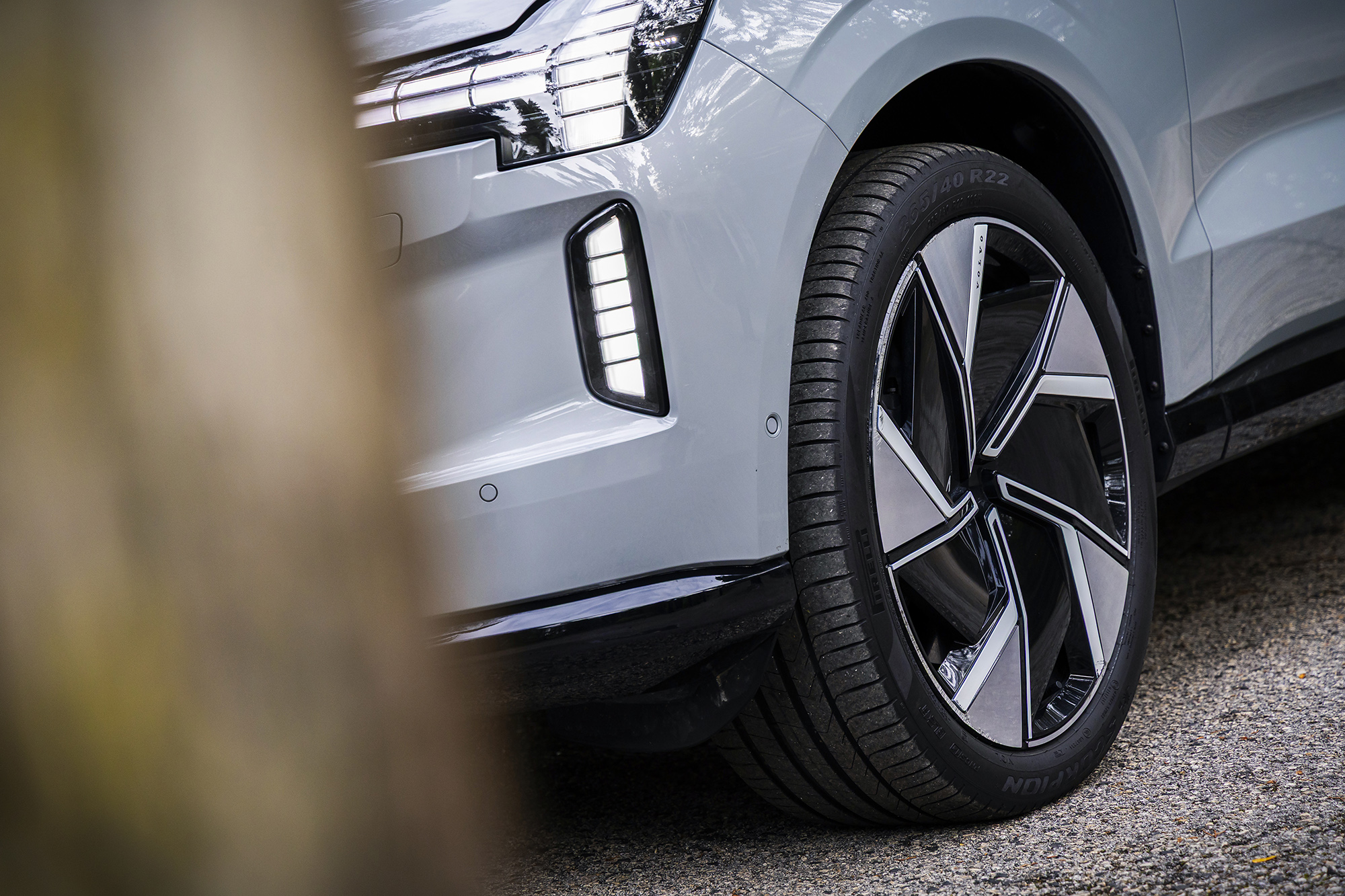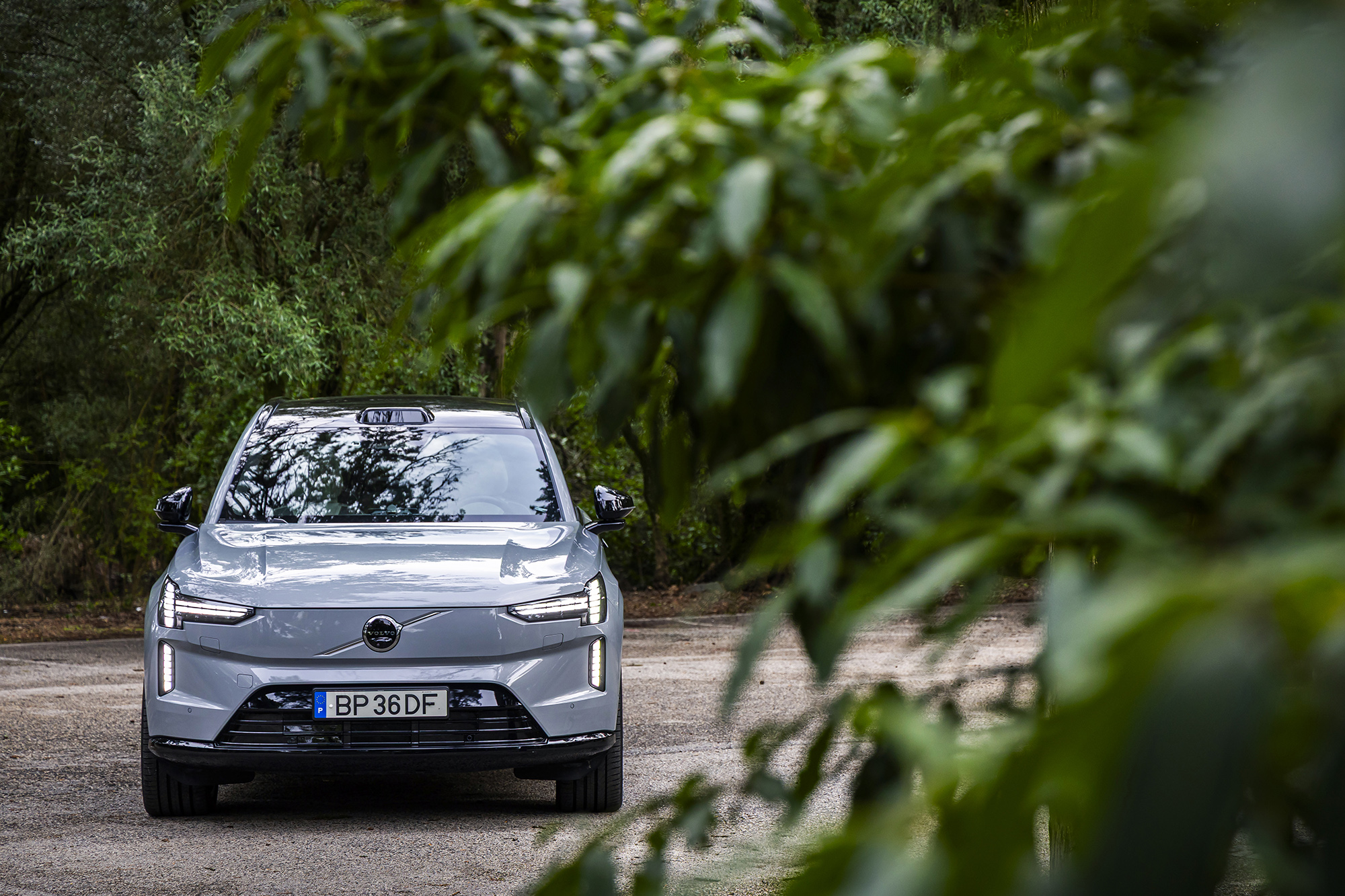 À primeira vista, o EX90 não parece tão grande quanto é. As linhas limpas afastam-no do aspeto típico de “trator” que caracteriza muitos SUV. Os puxadores de porta embutidos e os faróis com assinatura “Martelo de Thor” conferem-lhe elegância rara num carro tão volumoso.